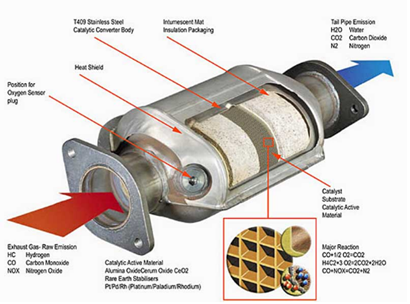圖1.催化轉(zhuǎn)化器的解剖圖