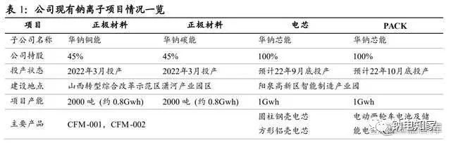 3)華鈉芯能:主要承擔鈉離子電芯研發和生產,公司持有股權 100%。