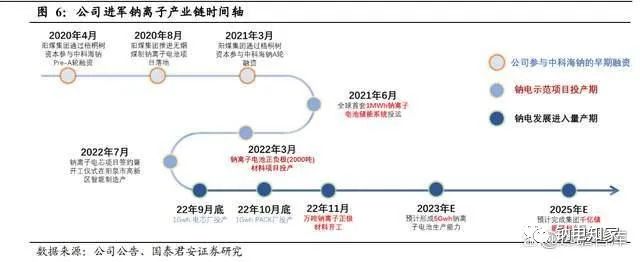 公司早在 2020 年就參與了中科海鈉的 Pre-A 輪融資,并于 21 年進一步增資。此后伴隨 21 年 6 月 1Mwh 鈉電儲能系統投運,公司即開啟了鈉離子正負極材料示范項目,該項目于 21 年 3 月投產。隨著年內電芯廠、PACK 廠的投產,預計將于年底開啟量產項目。