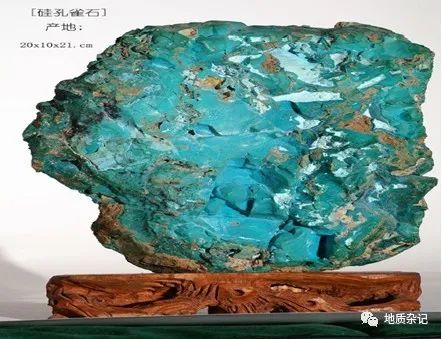 硅孔雀石又名鳳凰石,是水合銅硅酸鹽礦物,為一種次生的含銅礦物。在很多銅礦地區(qū)都會存在這種由銅礦分解而成的礦物,主要產(chǎn)在含銅礦床的氧化帶中,常與孔雀石、藍銅礦、赤銅礦,自然銅共生。這是因為銅礦遇到含二氧化硅的水而發(fā)生化學變化而產(chǎn)生的。此外,也常和玉髓相伴一起出現(xiàn),為部分藍色或綠色玉髓的重要內(nèi)含物。