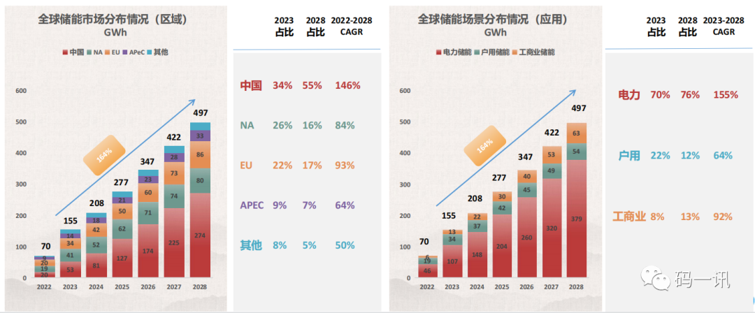 預計未來五年儲能會有高速增長,中美歐為最大市場,占整體市場88%;
