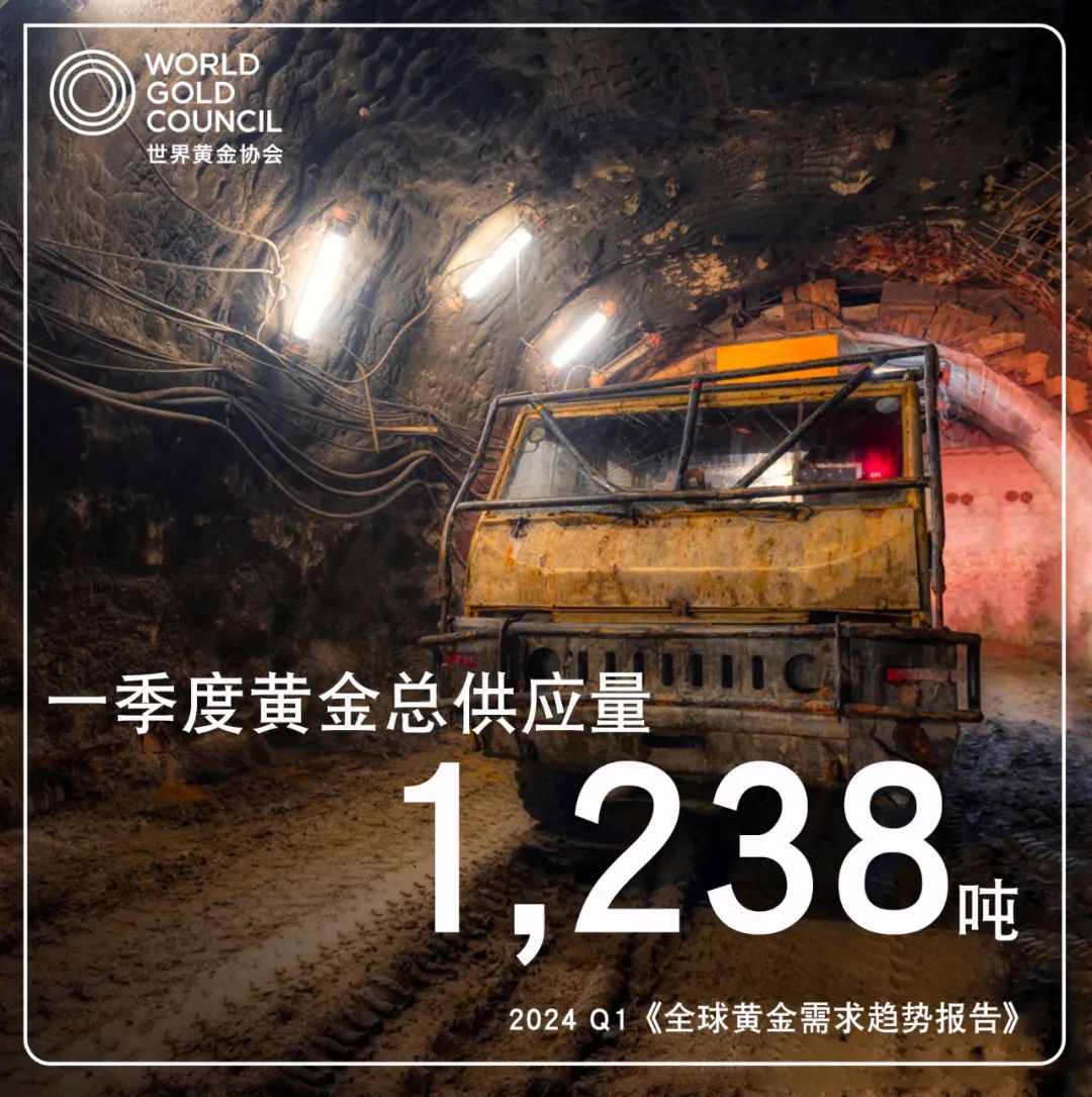 黃金供應(yīng)方面,一季度,全球黃金總供應(yīng)量達(dá)1238噸,同比增長3%。其中,金礦產(chǎn)量同比增長4%至893噸,創(chuàng)一季度新高。另外,一些投資者趁金價(jià)走高進(jìn)行獲利了結(jié),一季度回收金總量也創(chuàng)下自2020年三季度以來的季度新高,同比增長12%至351噸。