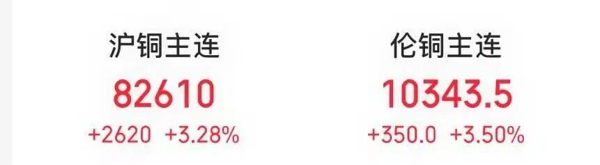 商品方面,全球銅價大幅上漲。倫銅價格漲3.50%,創2024年6月以來最高水平;滬銅價格漲超3%。