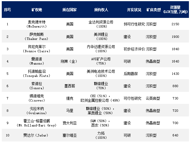 世界上前十大粘土和硬巖型鋰礦排名新鮮出爐
